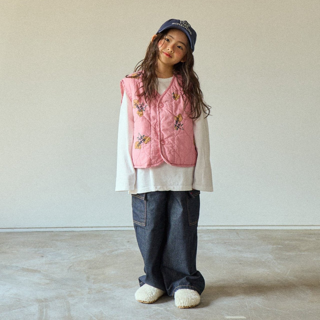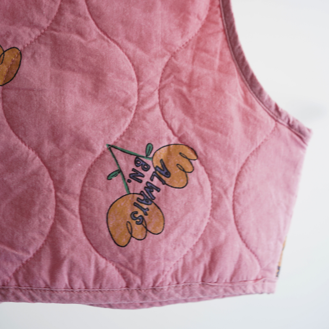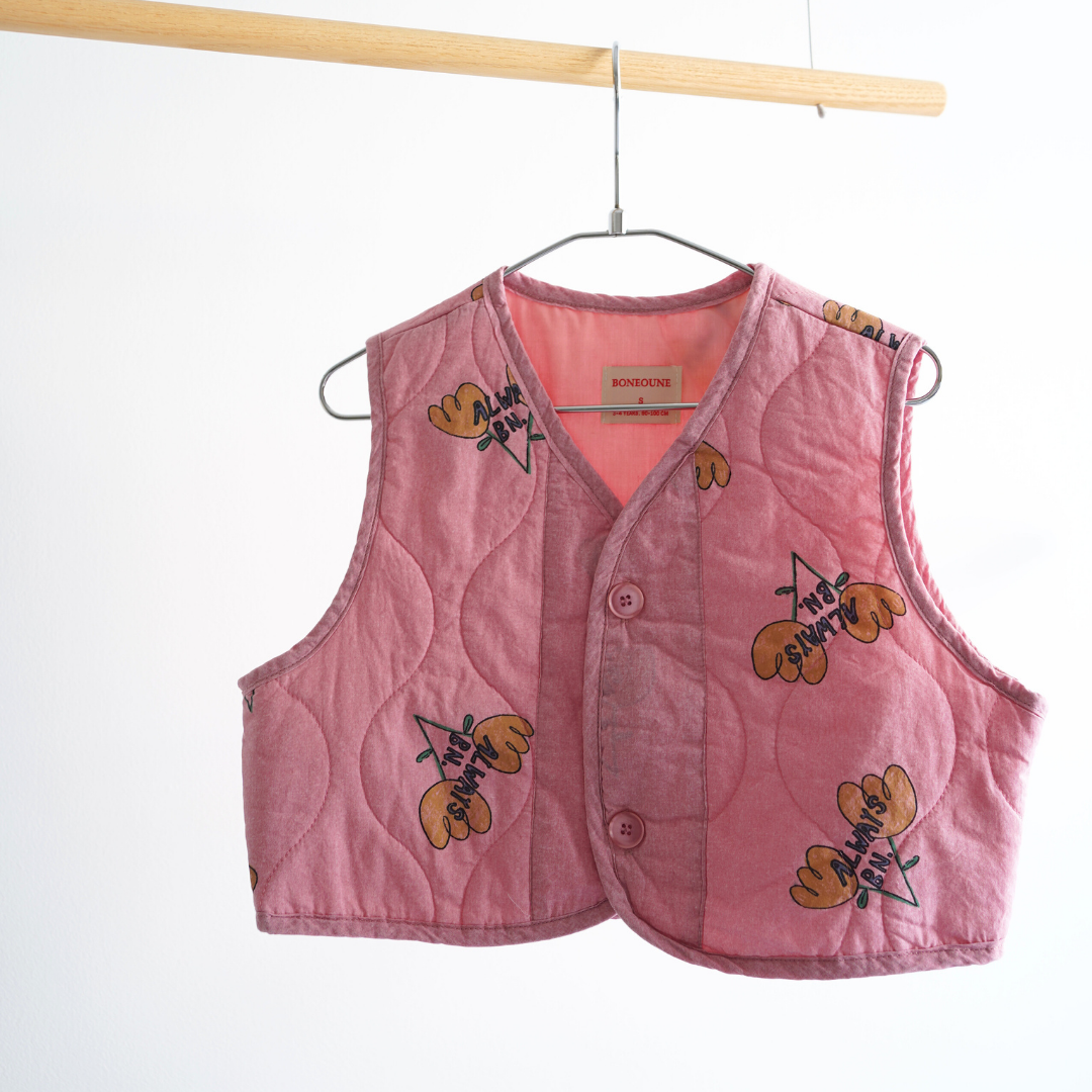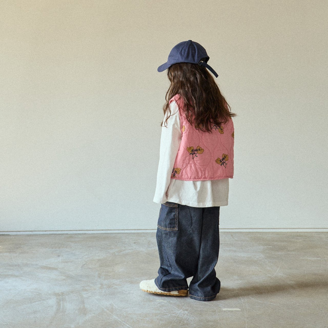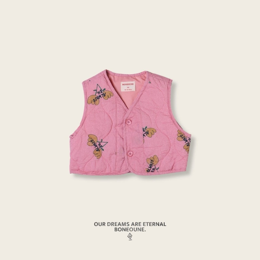 可愛らしいチューリップ柄のベスト。ピンクのカラーがアクセントになり、一枚羽織るだけでコーデが華やかに。