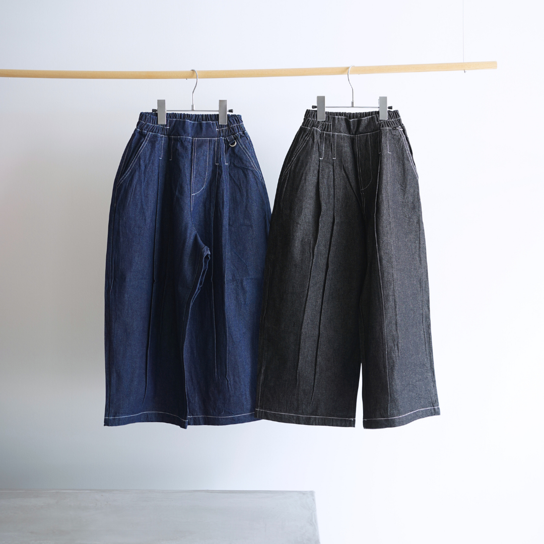 しっかりとした丈夫なデニム生地を使用したワイドなシルエットのパンツ。