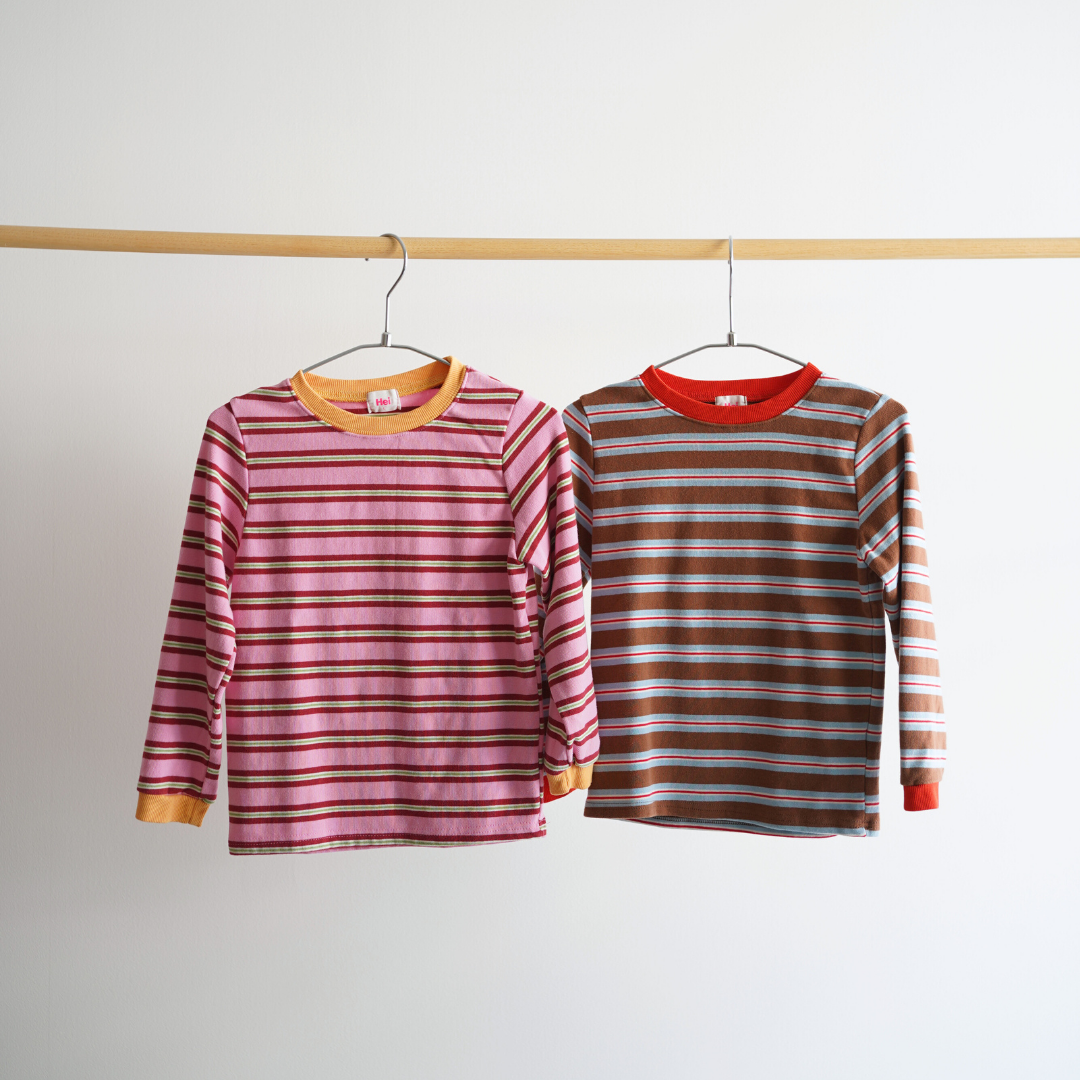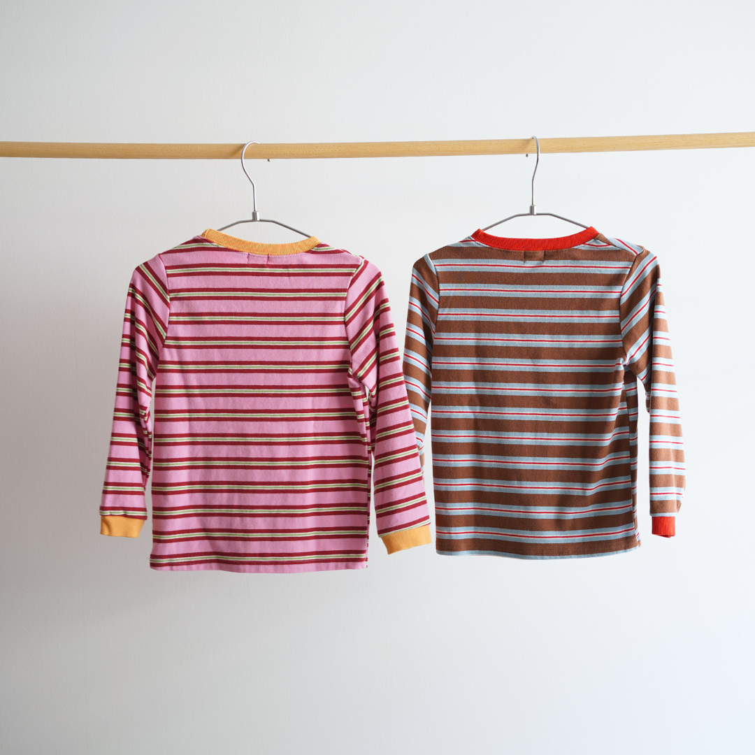 心が弾むようなカラフルPOPなトップス。アウターを着る季節になっても、インナーが明るいとコーデも華やかになりますよね🌼子供らしい、キュートな一枚です♡