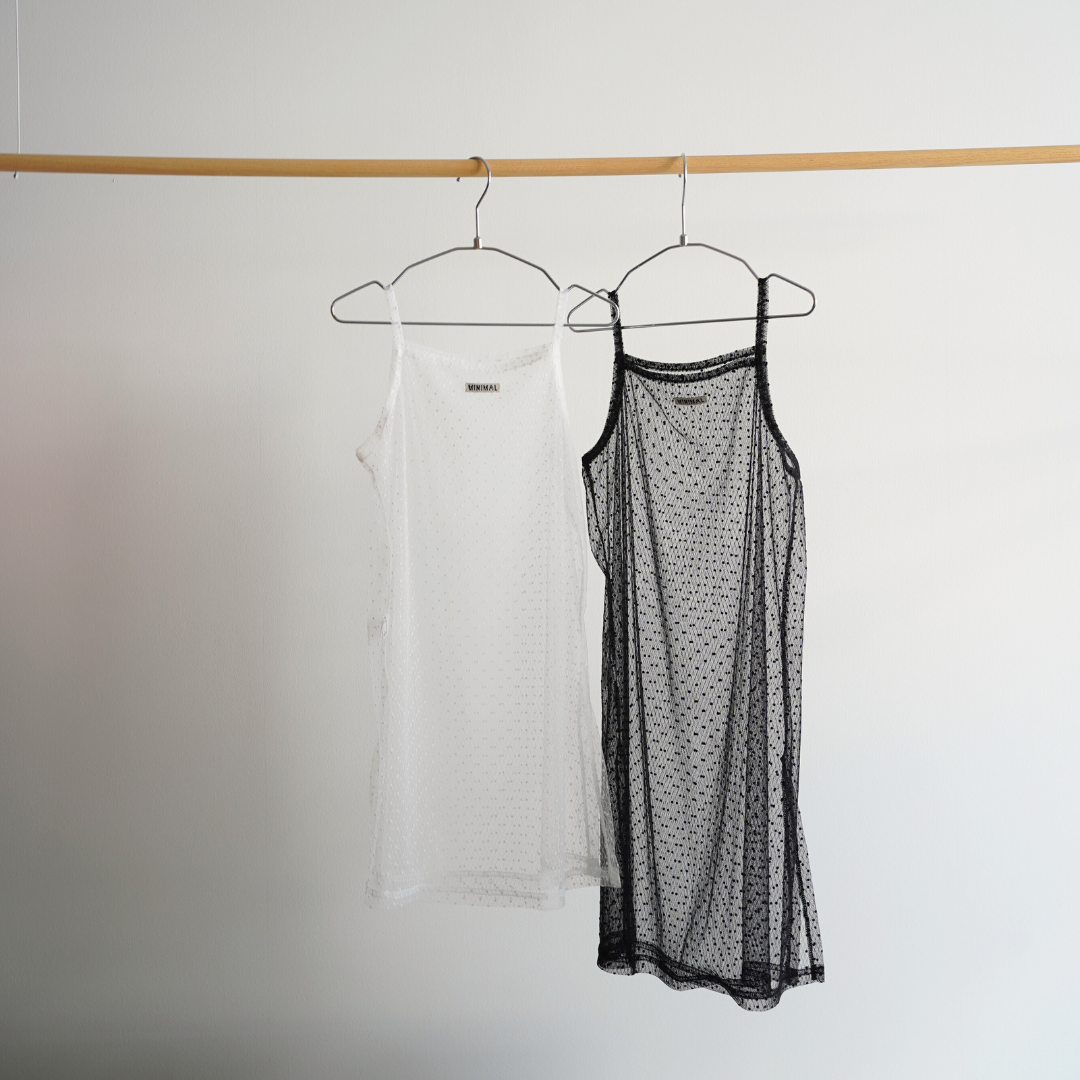 繊細なドット生地で仕上げられたキャミソールワンピ。